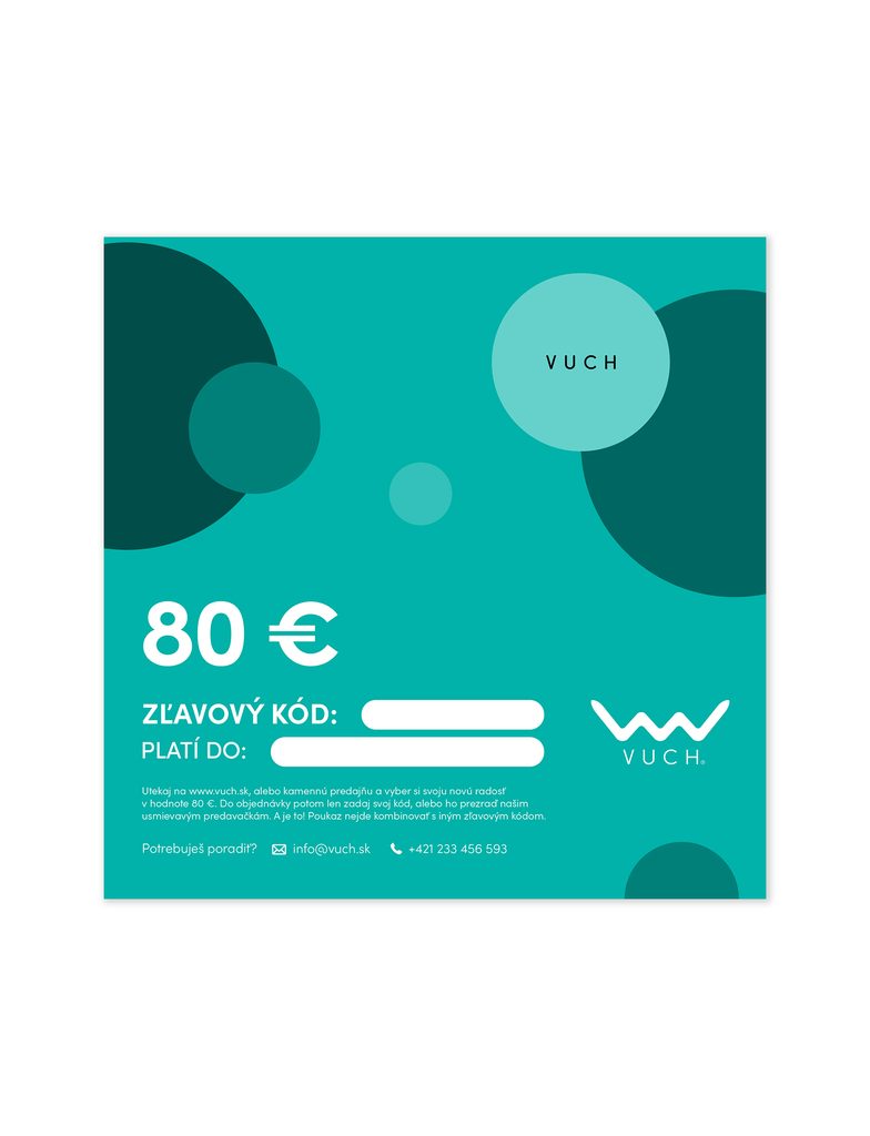 Chceš niekomu urobiť radosť a nevieš, čo presne by si u nás vybral? Darčekový poukaz je ideálnym riešením. Tento je nabitý na 80 €. Tak už si len rozmysli, koho potešíš novou „vuškou“.