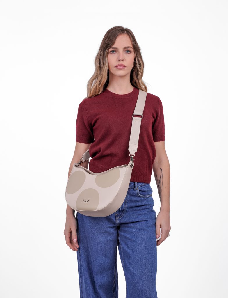 Carys Big Dot Beige bodkovaná crossbody kabelka