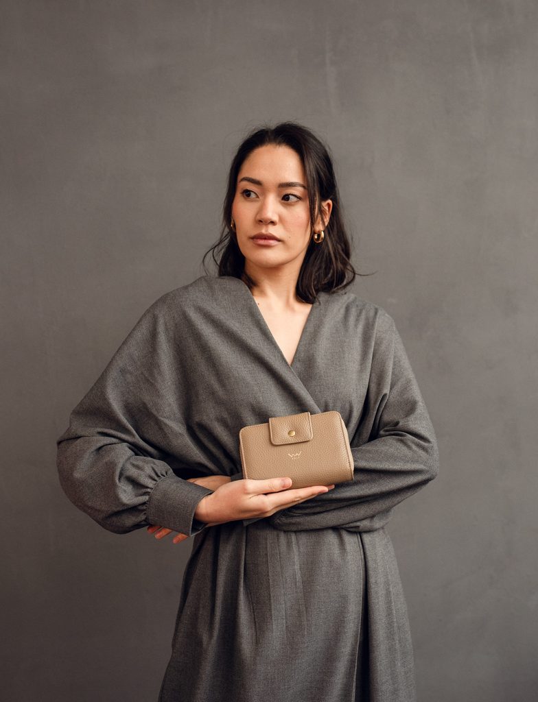 Ebba Grace Taupe stredná peňaženka z talianskej hovädzej kože