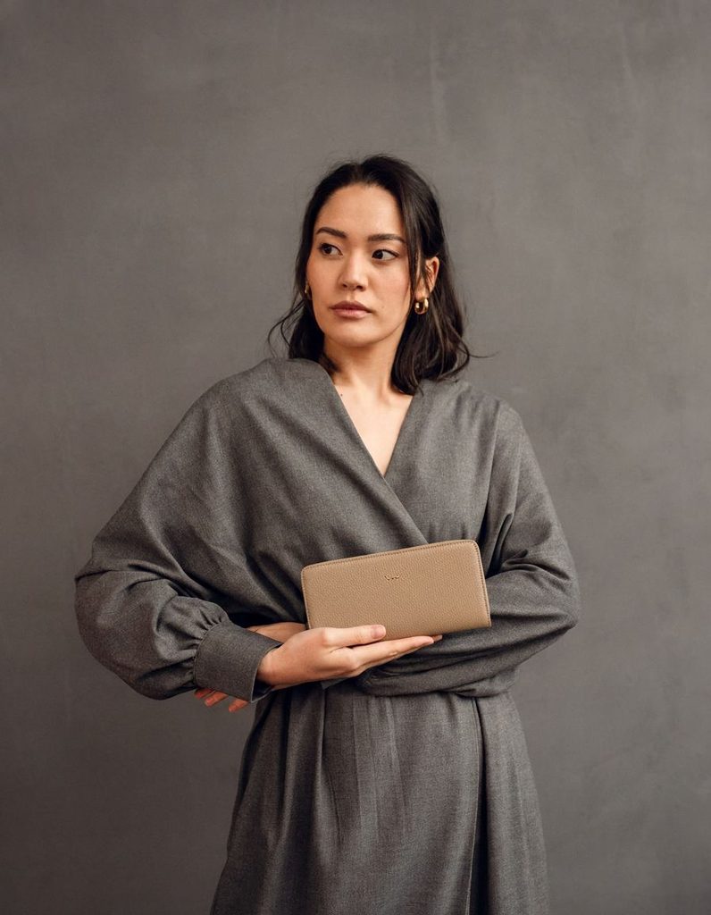 Nightie Nicci Grace Taupe peňaženka na zips z talianskej hovädzej kože