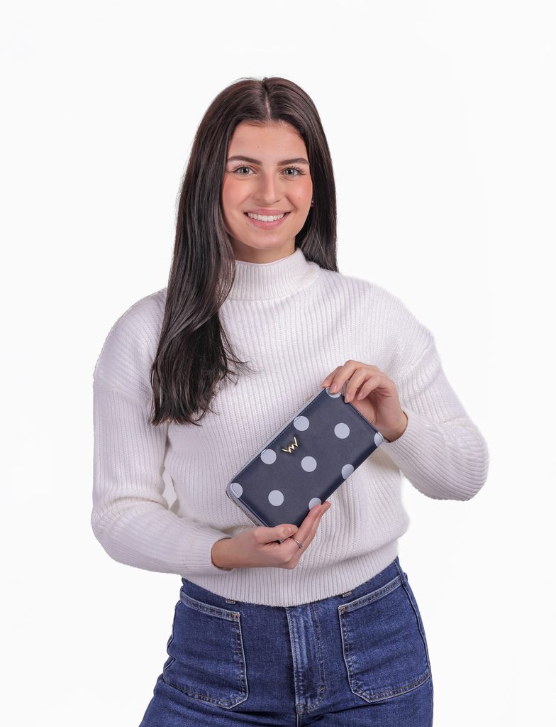 Sindy Blue bodkovaná peňaženka na zips