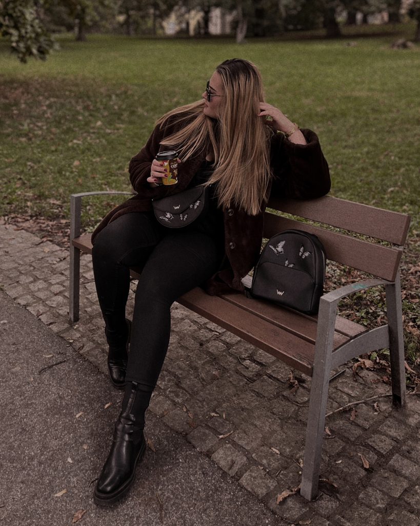 mestský batoh s motýľou výšivkou