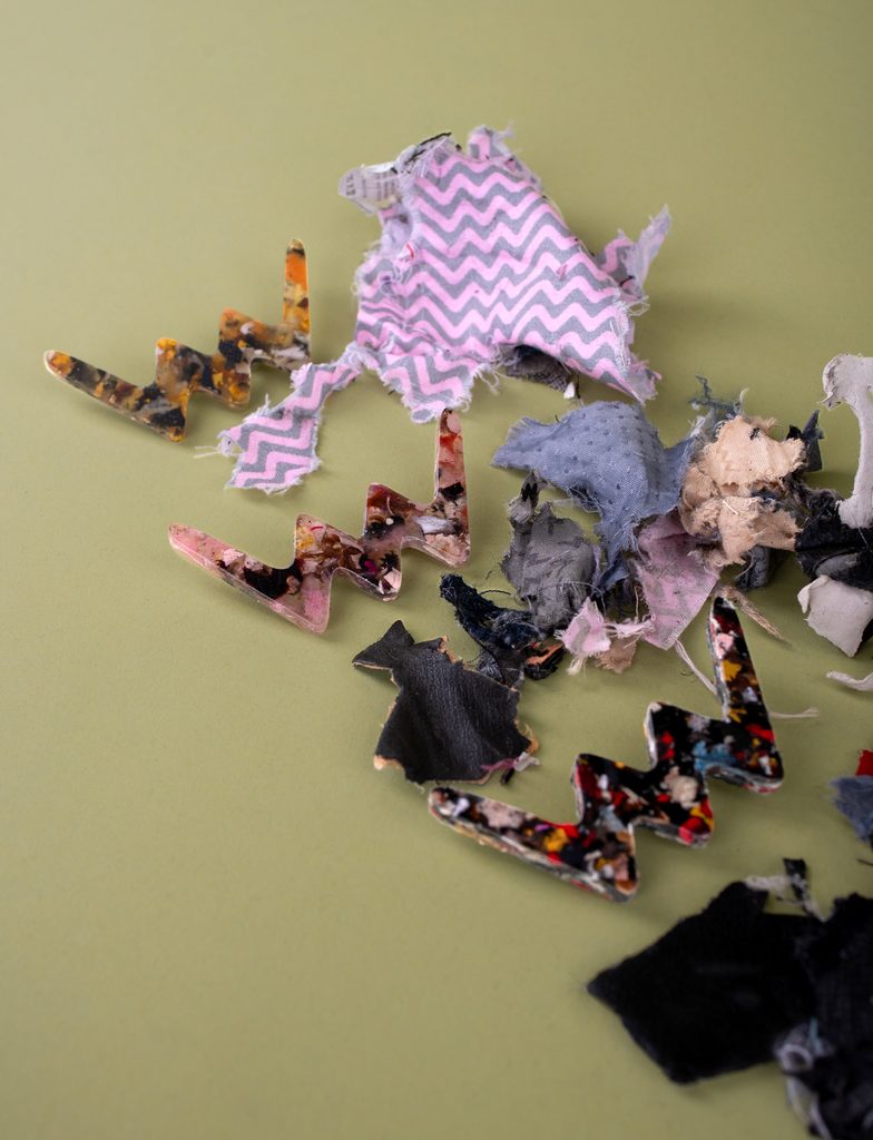 Každý kúsok je úplný originál. Farebné kúsky pôvodného materiálu sú výsledkom náhodného rozmiestnenia recyklátu, čo z neho robí unikátny dizajnový produkt do Tvojho šatníka alebo interiéru. Podpor českú ručnú výrobu a inovatívny udržateľný prístup.