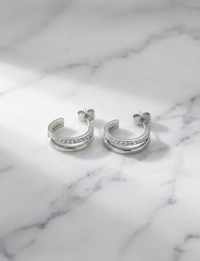 Viac informáciíKruhové náušnice v plnej kráse, ktoré ozdobia Tvoje uško. Z tohto páru náušnic sa skrátka len tak nevymotáś. Dvojitý kruhový efekt a trblietavé kamienky sa stanú pútavým doplnkom Tvojich outfitov.