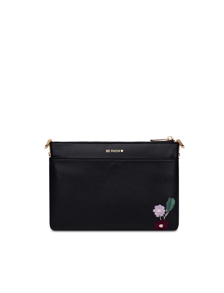 Lylann Flowers Black mini kabelka s kvetinovou výšivkou