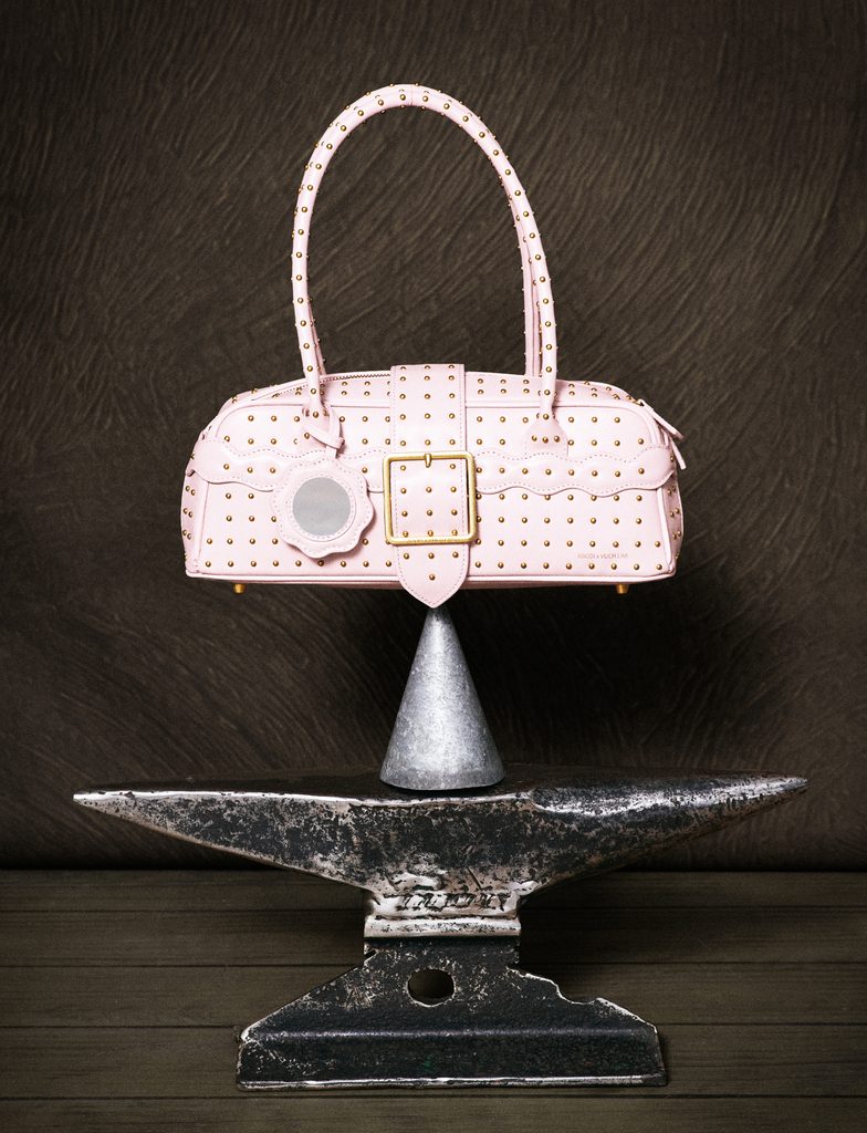 Model je ponúkaný v štyroch farebných prevedeniach, kde každá varianta evokuje inú náladu: dramatická čierna mat pre večernú silu, vášnivá plná červená, jemná romantická svetlo krémová alebo unikátna ružová s drobným kovaním v tvare bodky po celom obvode – od mestskej elegancie po nenápadný quiet luxury tón. Ku kabelke môžeš pripnúť Villushku, ochranný amulet – vílu spájajúcu staročeský a transylvánsky folklór.