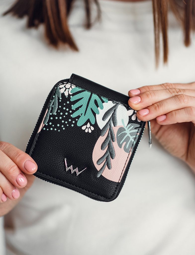 Patricia Desert Black peňaženka s kvetinovou potlačou a výšivkou