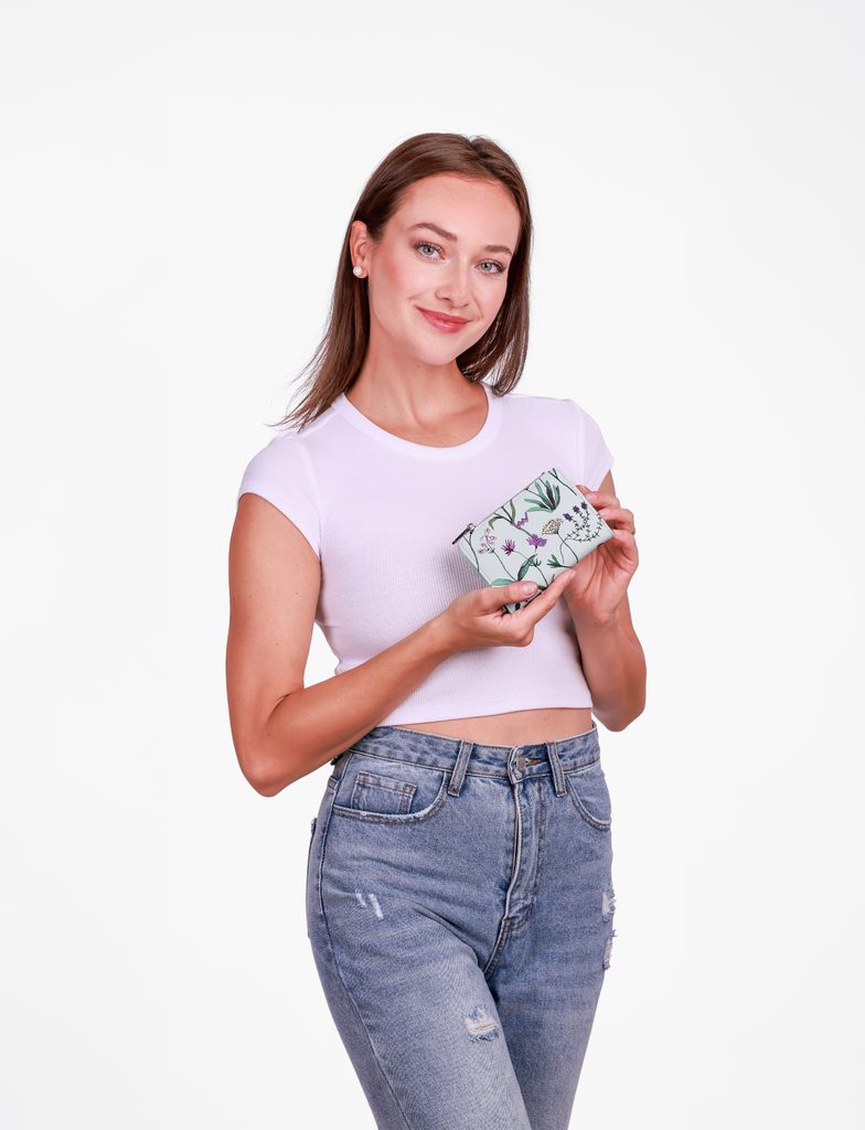 Korra Wildflowers Green mini peňaženka s kvetinovým potlačou a výšivkou