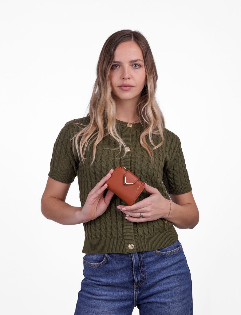Nava Brown mini peňaženka na patent